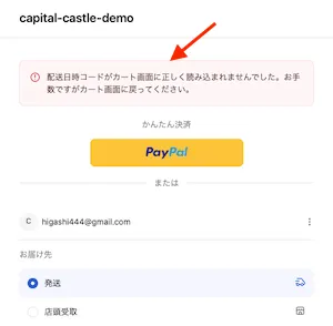 購入完了をブロックされたオンラインストアのユーザーは一度カート画面に戻ってアプリのコードの再読み込みをトライする必要があります。