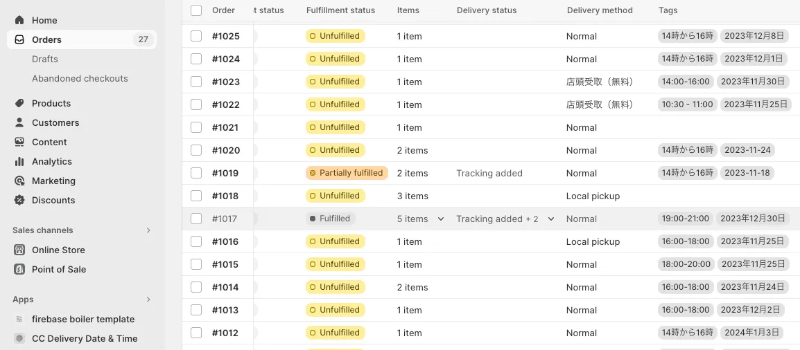 - Add delivery date and time tags to orders