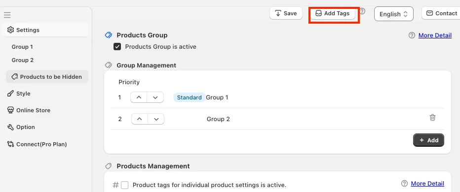 - Products Group (settings by Product Tag)
