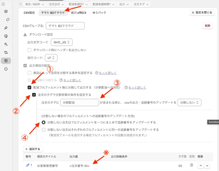 If you have set up split shipping at checkout or manually split shipments for an order, you can split the output rows in the order CSV accordingly. You can also update tracking numbers for each split shipment.