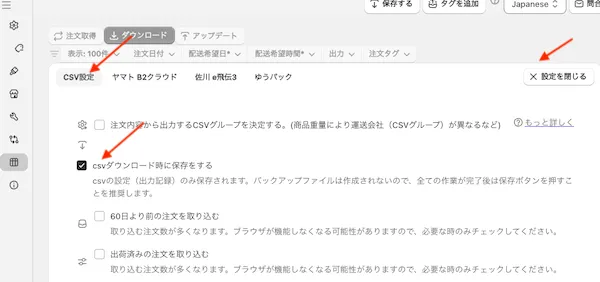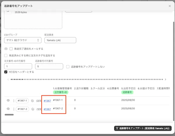 When exporting CSVs, the app links the “Order Number-ID” with the export history to update tracking numbers for each shipment.